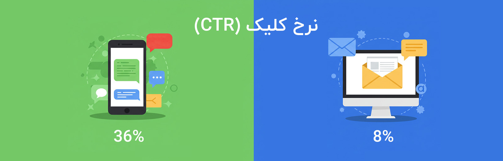 - بازاریابی پیامکی: نرخ کلیک در پیامکها به طور میانگین حدود ۳۶٪ است.